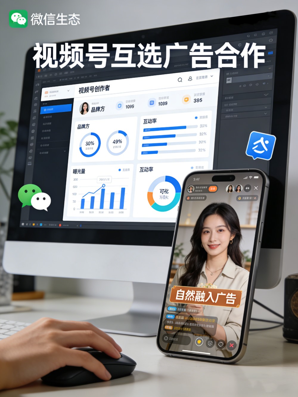 依托微信全域生态与精准数据能力,搭建品牌与创作者的自由合作桥梁,让广告自然融入优质内容场景,实现 “内容价值 + 营销效果” 的双向共赢。
